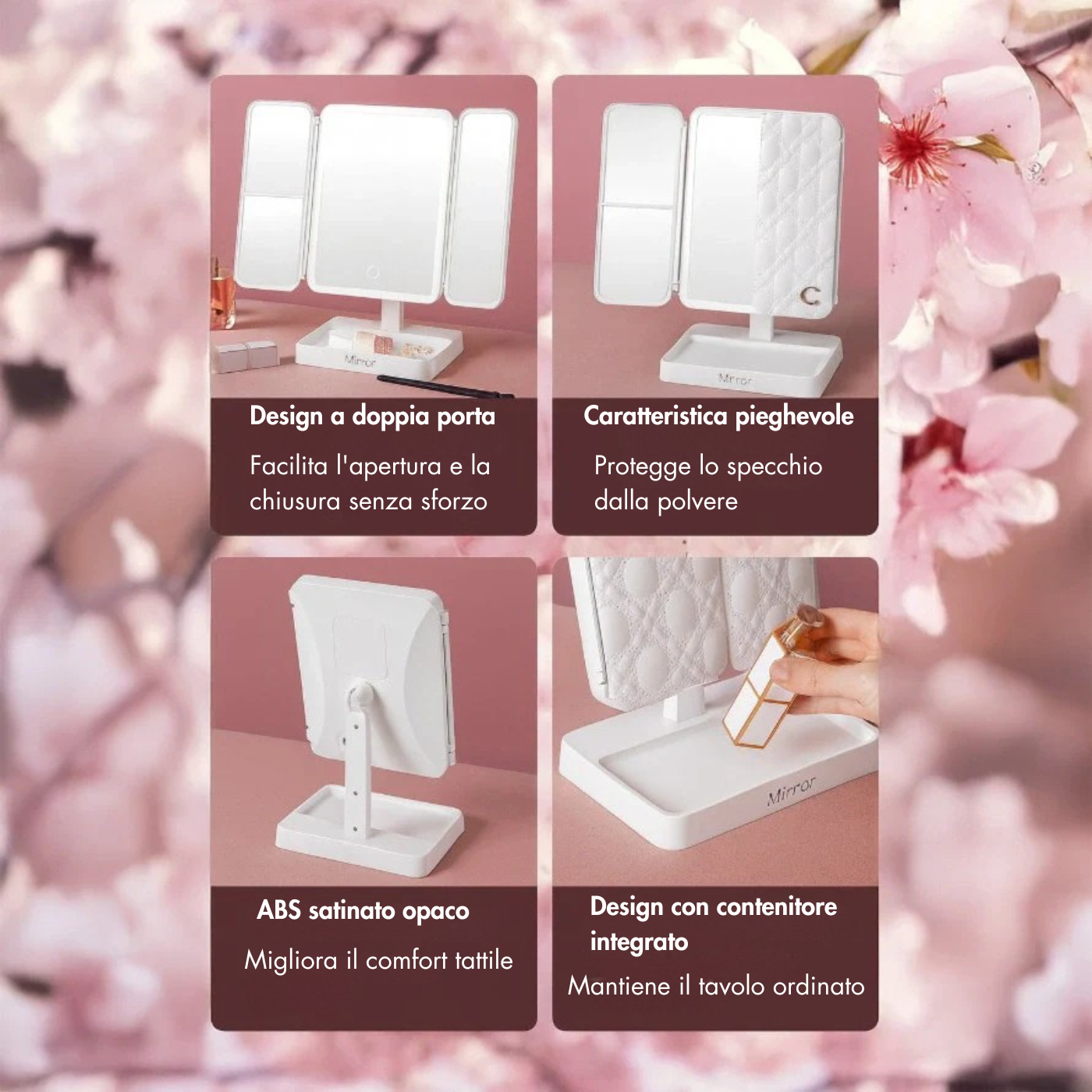 Questo specchio mostra ogni dettaglio con una luce perfetta.